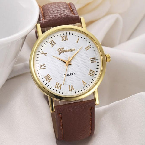 Hot Sale! Genvivia Luxury Women's Watch Fashion Unisex Leisure Dial Leather Band Analog Quartz Wrist Watches ladies watch