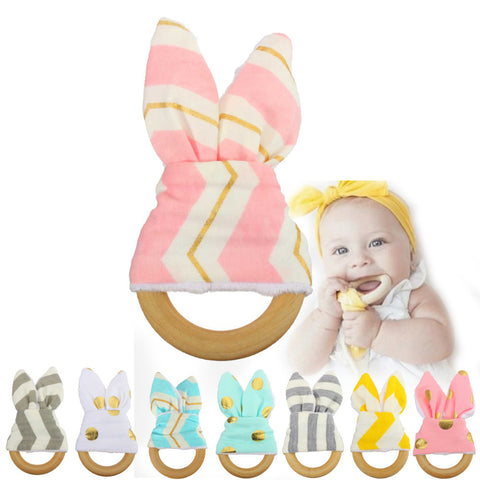 Hot Sale Baby Teether Teething Ring Natural Wood Circle With Fabric Wooden Teethers Training Sensory Newborns Toys.