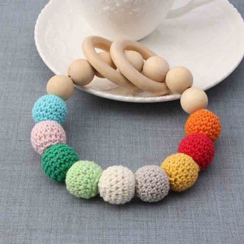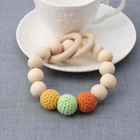 New 1PC Teething Natural Round Wood Bracelet Baby Newborn Mom Kids Wooden Teether Toy.